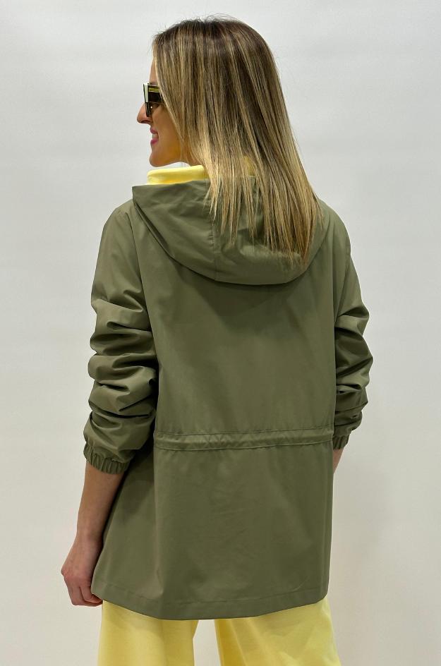 Chaqueta Artikel de Fuchs Schmitt en color verde caqui, confeccionada en 100% poliamida. Diseño ligero con capucha, cierre frontal oculto y bolsillos delanteros con solapa. Una prenda práctica, cómoda y muy fácil de combinar para el entretiempo.