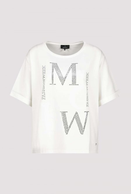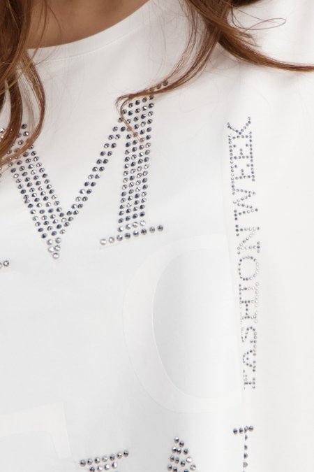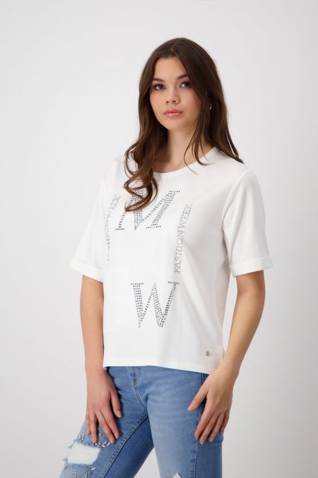 Camiseta de manga corta de Monari color blanco con ajuste regular. Escote redondo, hombros caídos y bajo redondeado, garantizan un ajuste perfecto. Detalle de letras con strass en la parte delantera al tono.