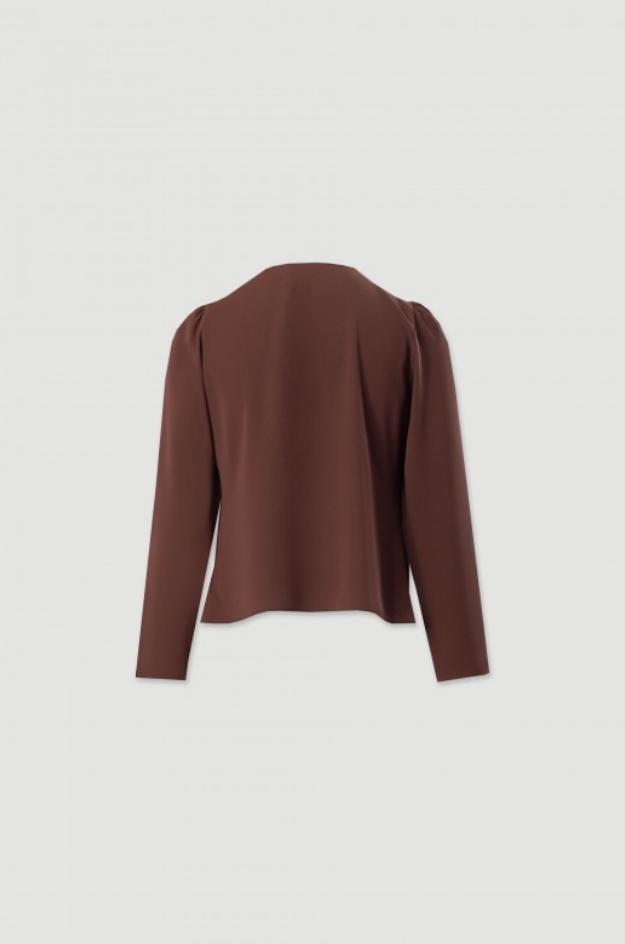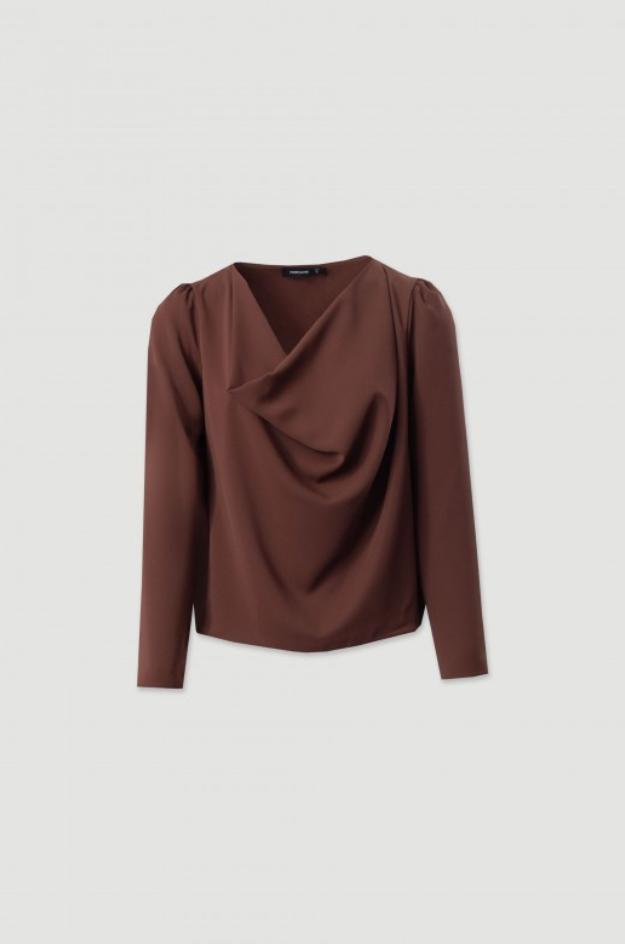 Túnica Ferrache marrón con escote drapeado y manga larga. Elegante, fluida y muy favorecedora.