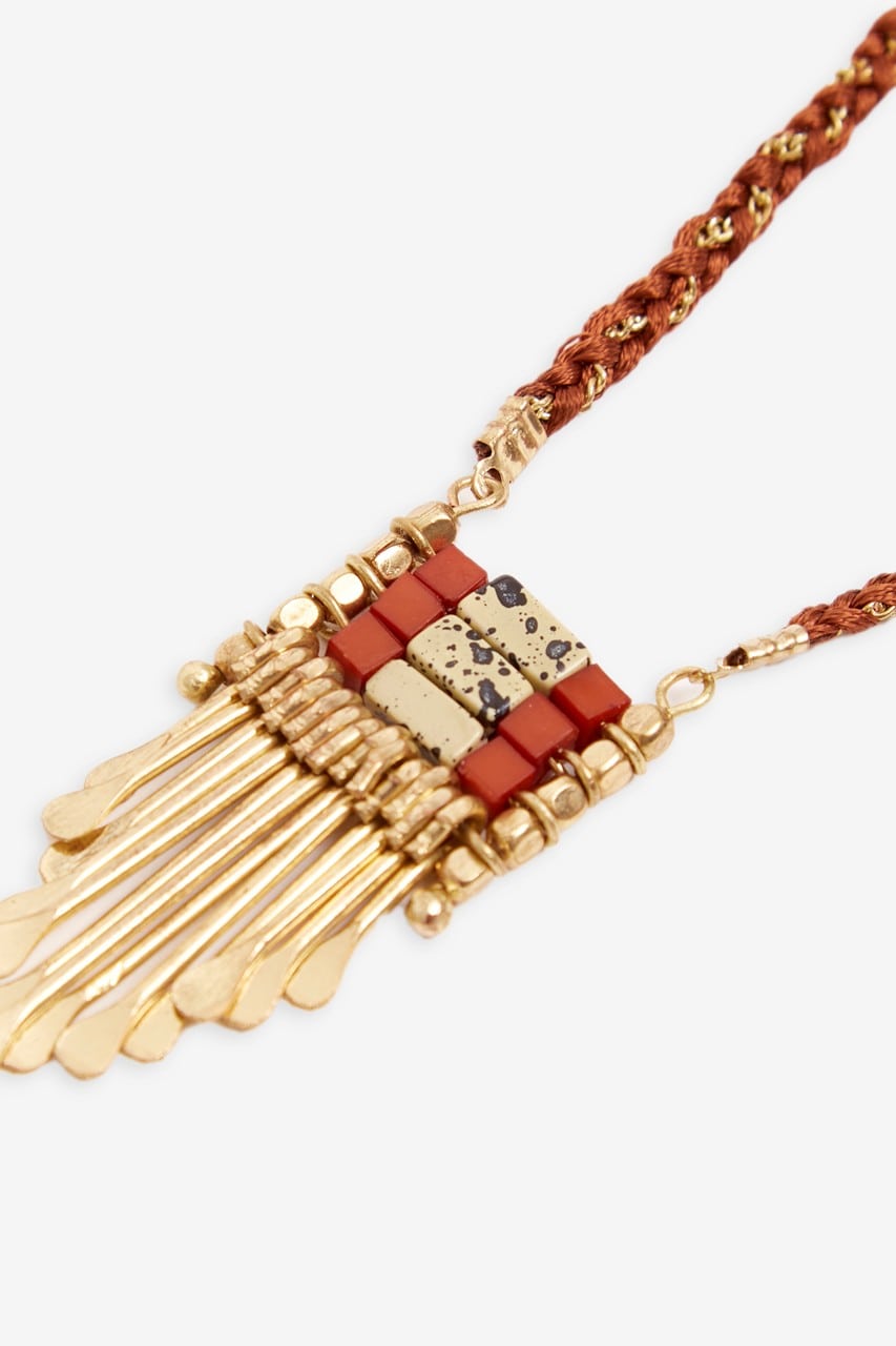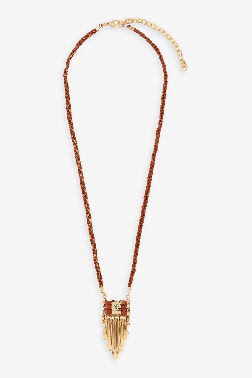 Collar de cuerda trenzada con abalorio de Nekane. Cierre con mosquetón.