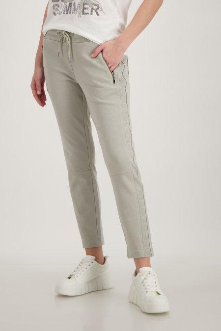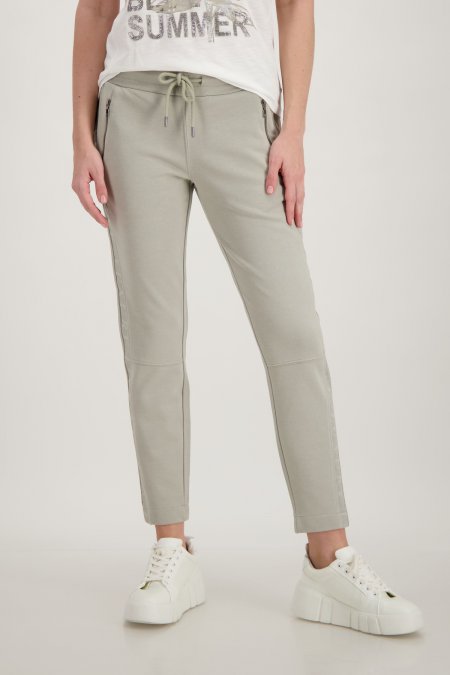 Pantalón joger de Monari color verde kaki con tiro medio y cintura elástica con cordones ajustables. Bolsillos con cremallera en la parte delantera y bolsillos de parche en la parte trasera. La mezcla de algodón garantiza una sensación súper suave y un aspecto de alta calidad.